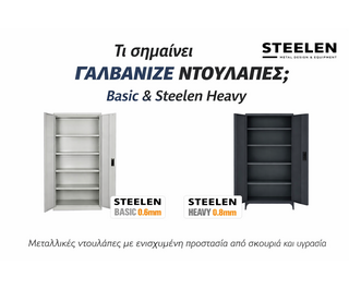 ΠερισσότεραΤι είναι οι γαλβανιζέ ντουλάπες; Δες γιατί οι σειρές Steelen Basic και Steelen Heavy εξασφαλίζουν μέγιστη αντοχή και μεγάλη διάρκεια ζωής.