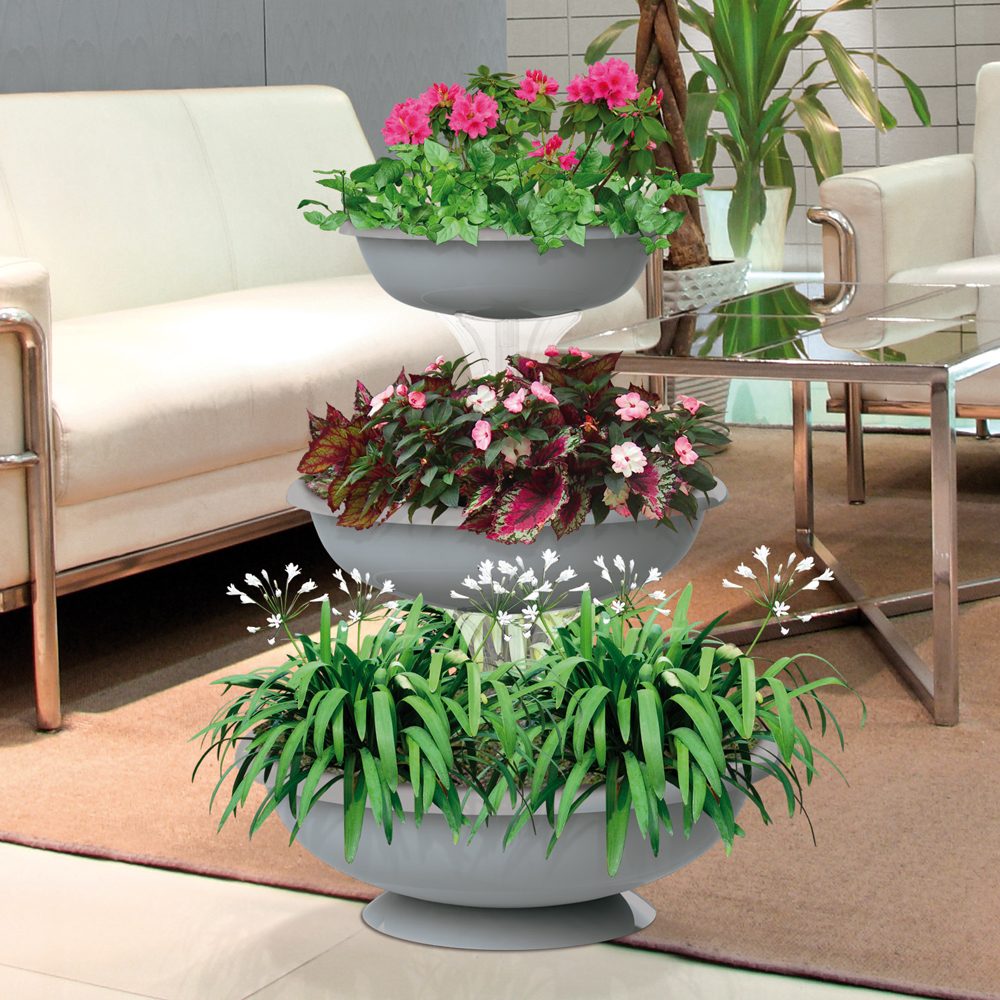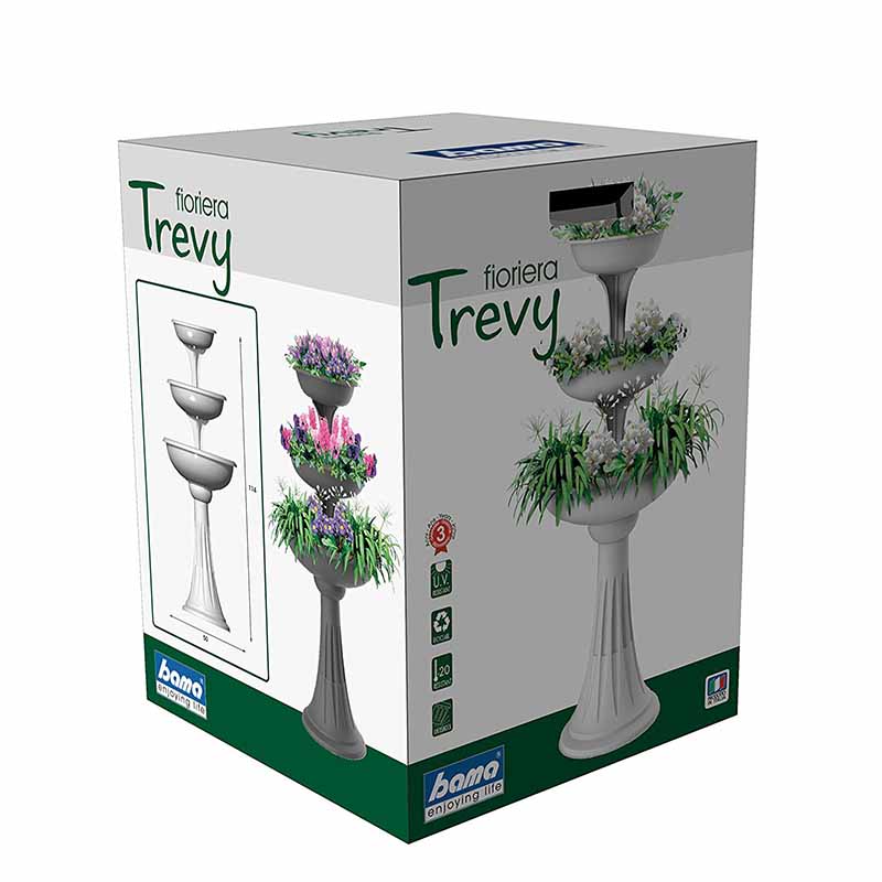 Ανθοστήλη Ιταλικού σχεδιασμού και παραγωγής, κατασκευασμένη από ρητίνη υψηλής αντοχής στο χρόνο, τις εναλλαγές θερμοκρασίας και την υπεριώδη ακτινοβολία UV. Διαθέτει 3 στρογγυλά μπολ για υποδοχή των φυτών με διάμετρο 30, 40 και 50 εκατοστών αντίστοιχα και συνολική χωρητικότητα 29,2 λίτρα. Η κομψή εμφάνιση και ο μοναδικός σχεδιασμός της που μοιάζει με συντριβάνι, την καθιστούν κατάλληλη για σπίτια και επαγγελματικούς χώρους όπως ξενοδοχεία, εστιατόρια, καφετέριες. Επίσης, χρησιμοποιείται από διακοσμητές και επαγγελματίες στολισμών σε γάμους, βαφτίσεις και άλλες κοινωνικές εκδηλώσεις.