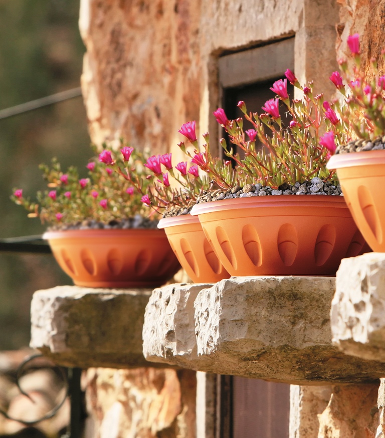Γλάστρα βαρέως τύπου Ιταλικής παραγωγής, με εφαρμοσμένο πιάτο στη βάση της, το οποίο αποσπάται για να καθαριστεί. Είναι κατασκευασμένη από ανακυκλώσιμο υλικό που αντέχει στις μεταβολές της θερμοκρασίας έως και -20°C καθώς και στην υπεριώδη ακτινοβολία UV. Με κομψό, λιτό και ανάγλυφο design αποτελεί ιδανική επιλογή για τη διακόσμηση του χώρου σας.