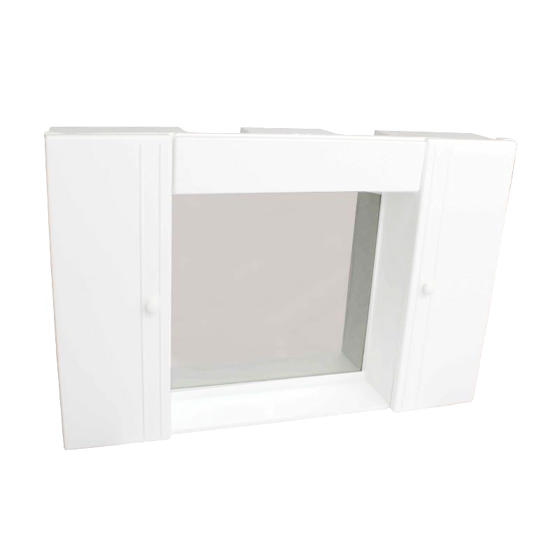 Ερμάριο μπάνιου κατασκευασμένο από πλαστικό λευκού χρώματος. Διαθέτει πλαφονιέρα φωτισμού και 2 ντουλάπια στις άκρες για αποθήκευση αξεσουάρ μπάνιου όπως κρέμες, καλλυντικά, σαμπουάν, ξυραφάκια, κ.α.