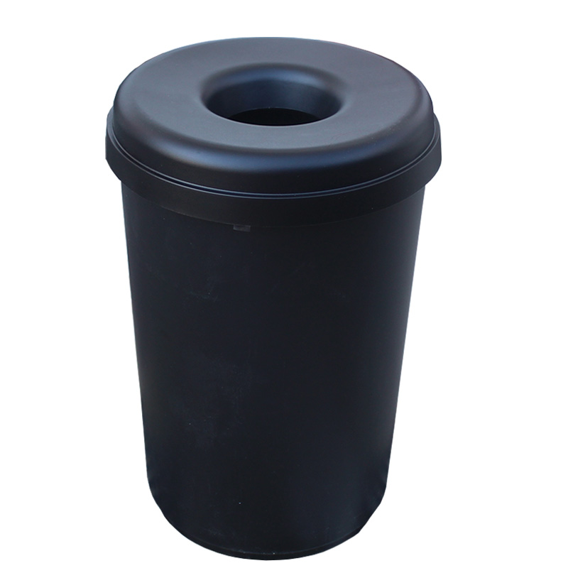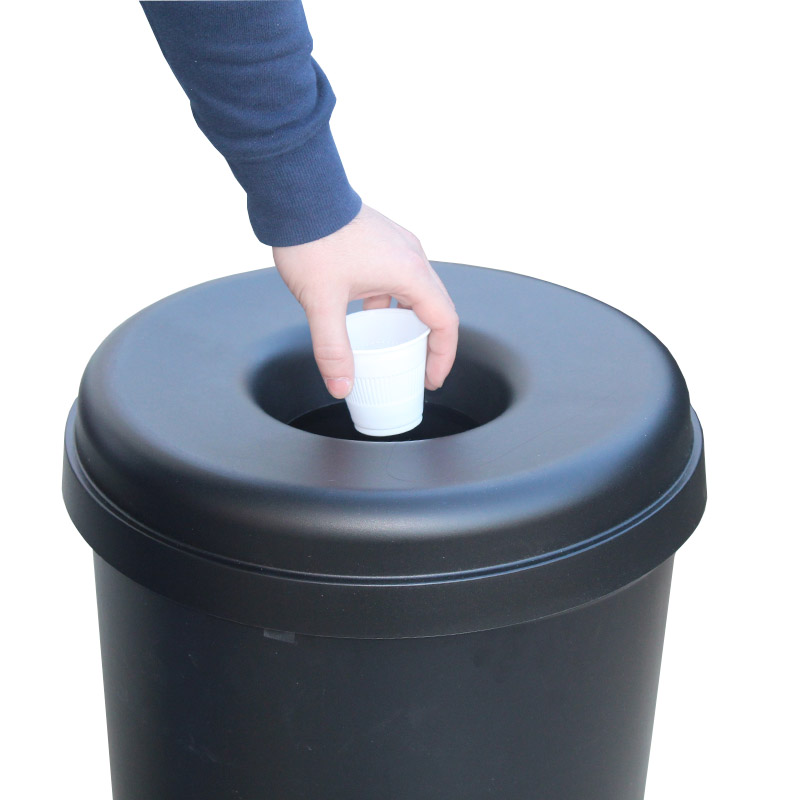 Στρογγυλός πλαστικός κάδος ανακύκλωσης με χωρητικότητα 60 λίτρων. Το άνοιγμα στο καπάκι εξυπηρετεί στην γρήγορη ρίψη των απορριμάτων, διευκολύνοντας την χρήση. Εσωτερικά διαθέτει μεταλλικό στεφάνι για τις σακούλες απορριμάτων ενώ συνοδεύεται από δύο αυτοκόλλητα ανακύκλωσης. Συνίσταται για τοποθέτηση σε εσωτερικούς επαγγελματικούς ή οικιακούς χώρους.