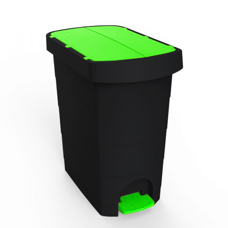 Κάδος Απορριμάτων 9lt Πλαστικός 18.5x27.5x31cm Επαγγελματικός/Οικιακός 1.12kg με Πεντάλ και Καπάκι Πεταλούδα PELICAN Μαύρο - Πράσινο