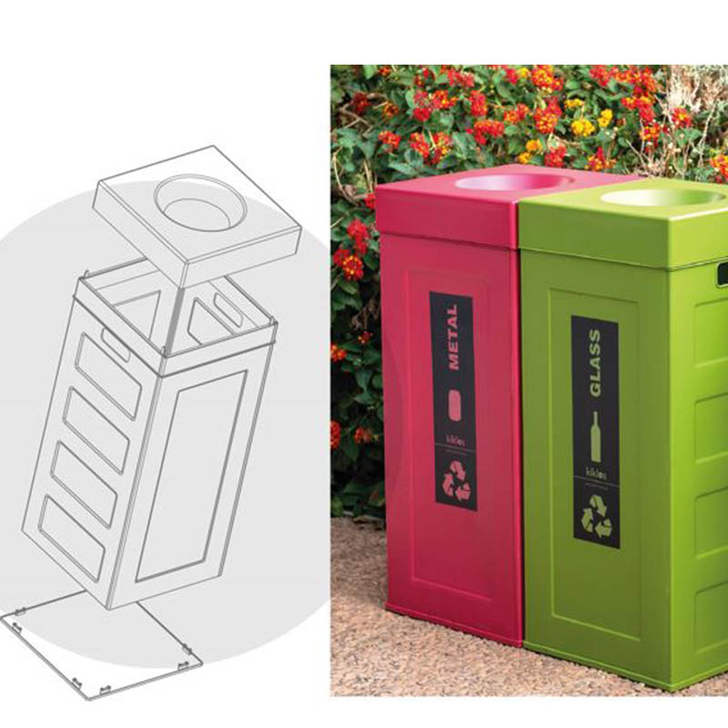 Τετράγωνος πλαστικός κάδος ανακύκλωσης υψηλής αισθητικής, κατασκευασμένος από 100% ανακυκλώσιμο πλαστικό με χωρητικότητα 70 λίτρων.