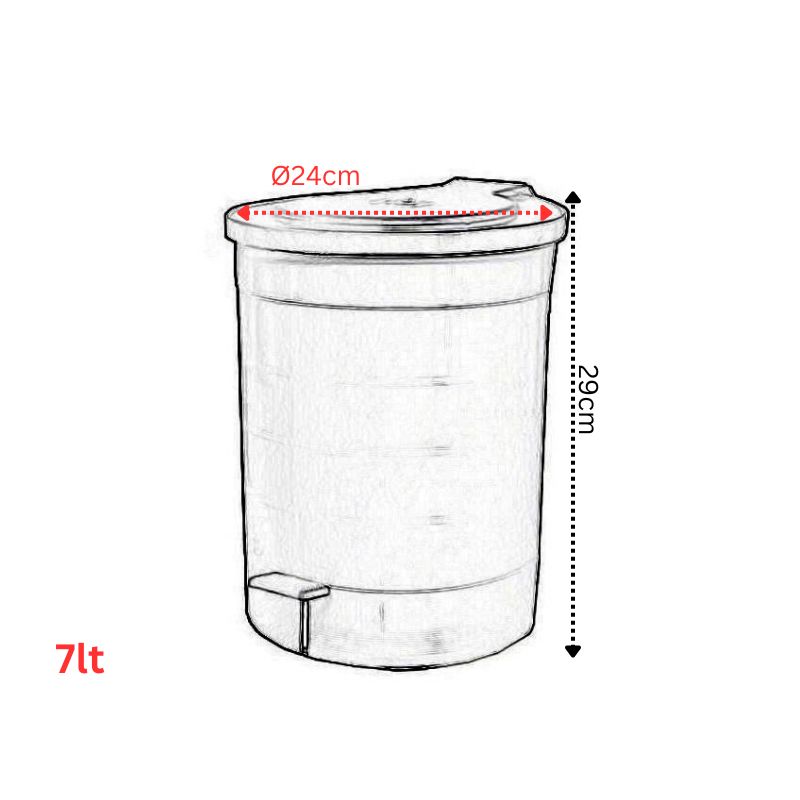 Στρογγυλό δοχείο απορριμμάτων Ελληνικής παραγωγής, κατασκευασμένο από ανθεκτικό πλαστικό. Διαθέτει κομψό σχεδιασμό, μηχανισμό ανοίγματος με το πόδι (πεντάλ) και αφαιρούμενο εσωτερικό κάδο με χειρολαβή διευκολύνοντας τη χρήση. Κλασσική και πρακτική επιλογή, χρήσιμη σε κάθε μπάνιο. Ταιριάζει με το Πιγκάλ Κλειστό Στρογγυλό (κωδ. 85.225).