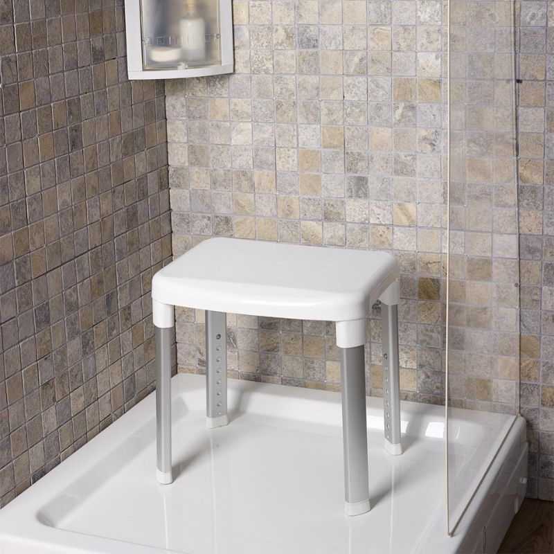 Κάθισμα-Καρέκλα Μπάνιου 34x42x42.cm με Ρυθμιζόμενο Ύψος MAX Αντοχή 130kg Βάρος 3.2kg Αλουμινίου-Πλαστικό Λευκό