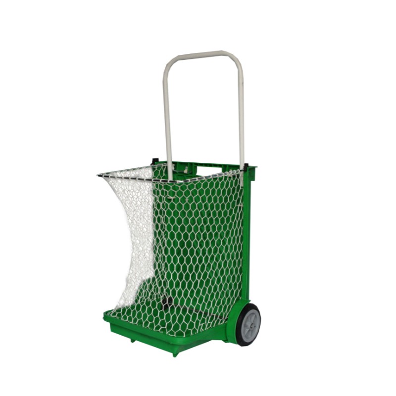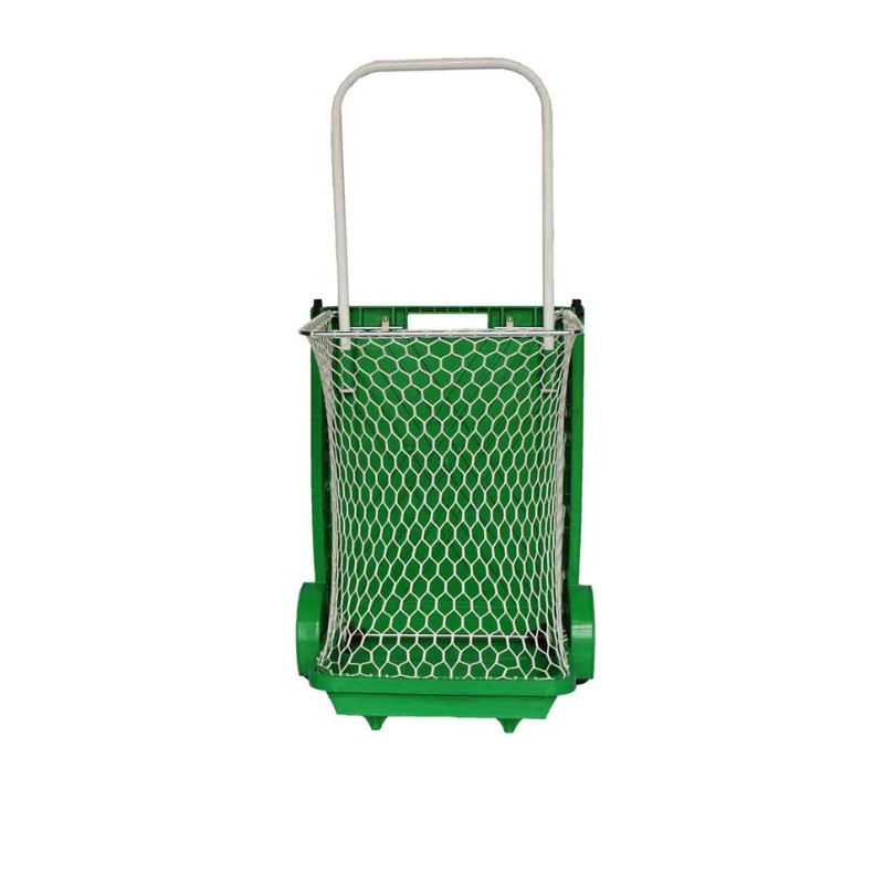 Διαθέτει δίχτυ που εξασφαλίζει μεγαλύτερη χωρητικότητα, μεταλλική λαβή για σταθερότητα και ρόδες για την ευκολότερη μετακίνησή του.