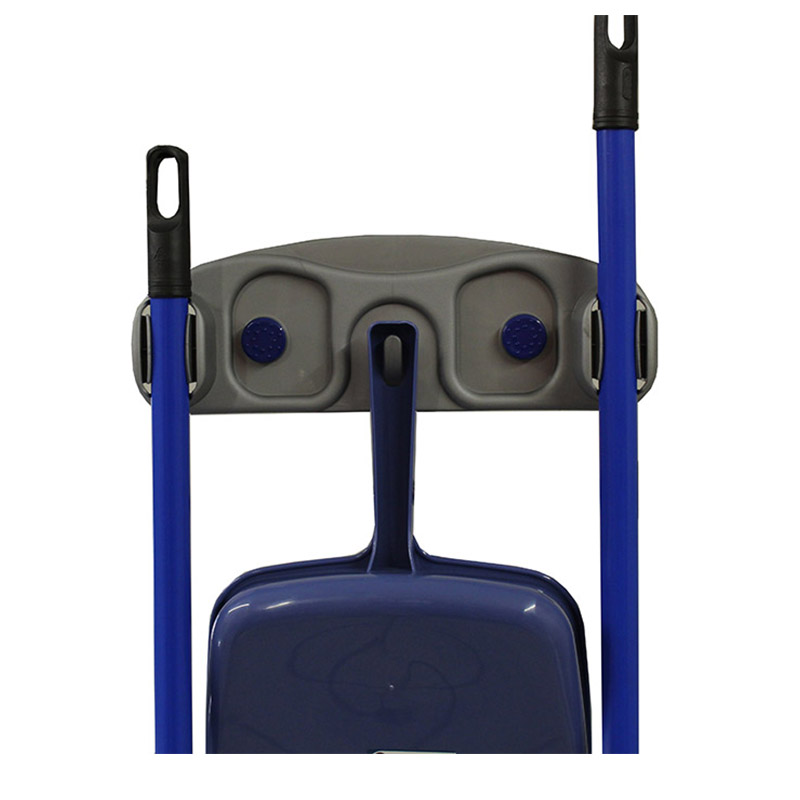 Επιτοίχια κρεμάστρα για σκούπες, κατασκευασμένη εξ'ολοκλήρου από πλαστικό υψηλής αντοχής στο χρόνο και την καθημερινή χρήση. Διαθέτει 2 υποδοχές για στήριξη κονταριών σκούπας και πλαστικό γάντζο για το φαράσι. Ιδανικό αποθηκευτικό αξεσουάρ για καλύτερη οργάνωση του χώρου, τοποθετείται με ευκολία στον τοίχο με ταινία ή με βίδες. Κατάλληλο για εσωτερικούς και εξωτερικούς χώρους. Συνδυάστε ιδανικά την κρεμάστρα με τα κατάλληλα αξεσουάρ για τον καθαρισμό δαπέδου.