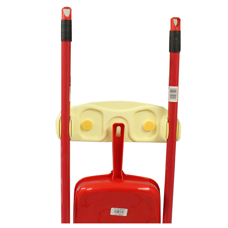 Επιτοίχια κρεμάστρα για σκούπες, κατασκευασμένη εξ'ολοκλήρου από πλαστικό υψηλής αντοχής στο χρόνο και την καθημερινή χρήση. Διαθέτει 2 υποδοχές για στήριξη κονταριών σκούπας και πλαστικό γάντζο για το φαράσι. Ιδανικό αποθηκευτικό αξεσουάρ για καλύτερη οργάνωση του χώρου, τοποθετείται με ευκολία στον τοίχο με αυτοκόλλητη ταινία ή με βίδες. Κατάλληλο για εσωτερικούς και εξωτερικούς χώρους. Συνδυάστε ιδανικά την κρεμάστρα με τα κατάλληλα αξεσουάρ για τον καθαρισμό δαπέδου.