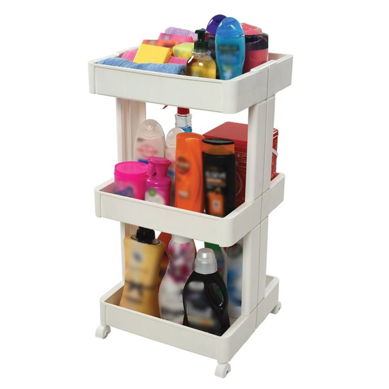 Διαθέτει 3 επίπεδα για αποθήκευση αντικειμένων και 4 ρόδες με δυνατότητα στριφογυρίσματος 360° που καθιστούν εύκολη τη μετακίνηση του.