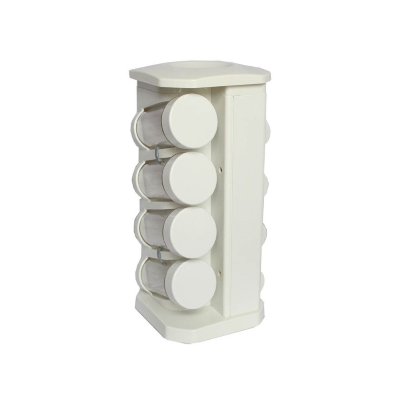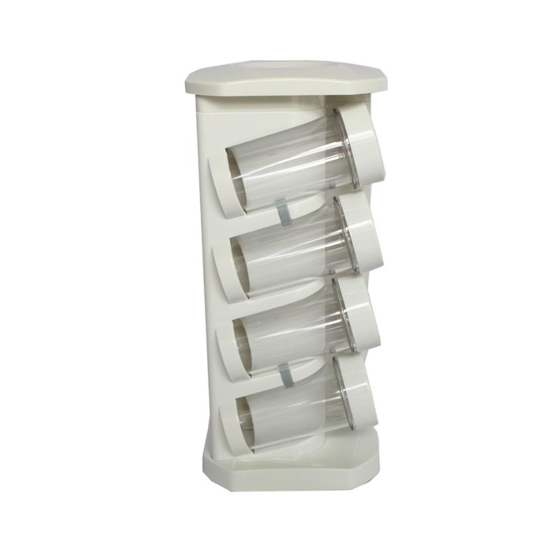 Διαθέτει 8 βαζάκια σε διάφανο χρώμα για να είναι ευδιάκριτο το εσωτερικό τους και περιστρεφόμενη πλαστική βάση για διευκόλυνση του χρήστη στην αναζήτηση.