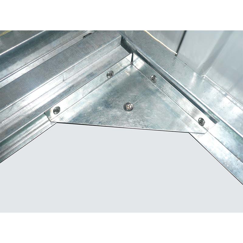 Γωνίες στήριξης για τις μεταλλικές αποθήκες κήπου, κατασκευασμένες εξ'ολοκλήρου από ηλεκτρογαλβανισμένο εν θερμώ χάλυβα (HDG Steel). Η συσκευασία περιλαμβάνει τις 4 γωνίες στήριξης, 20 βίδες και 4 ούπα.