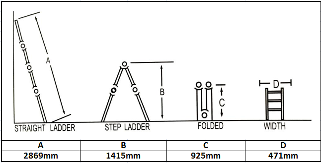 Σκάλα Αλουμινίου Επαγγελματική 4x3 Σκαλιά Μέγιστο Ύψος 287 εκατοστά Αντοχή 150kg Βάρος 9.4kg Πιστοποίηση EN131