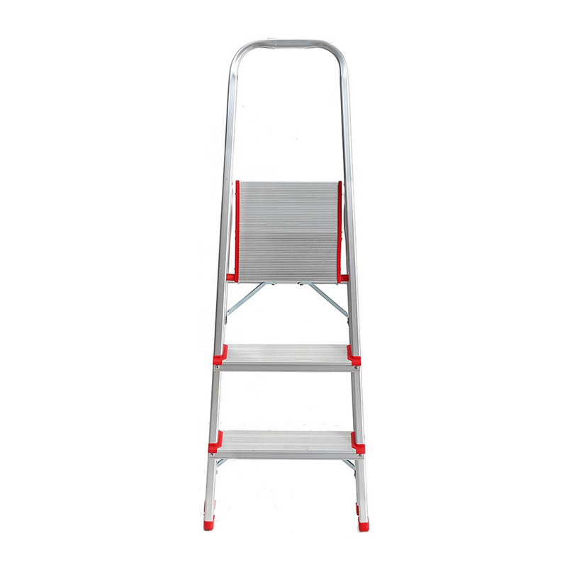 Σκάλα εξ'ολοκλήρου από αλουμίνιο με 2 σκαλιά και πλατύσκαλο με αντιολισθητικές επιφάνειες. Διαθέτει πλαστικές σφήνες στα σκαλοπάτια και αντηρίδες που δένουν το πλατύσκαλο με τα πόδια, εξασφαλίζοντας την σταθερότητα κατά την χρήση της. Η απόσταση της χειρολαβής από το πλατύσκαλο είναι εργονομικά σχεδιασμένη ώστε να διευκολύνει και να προσθέτει ακόμα περισσότερη ασφάλεια κατά το κατέβασμα.