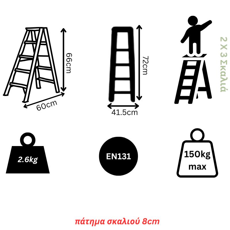 Σκαλοσκαμπό Αλουμινίου 2x3 Σκαλιά MAX Ύψος 66cm Βάρος 2.6kg MAX Αντοχή 150kg