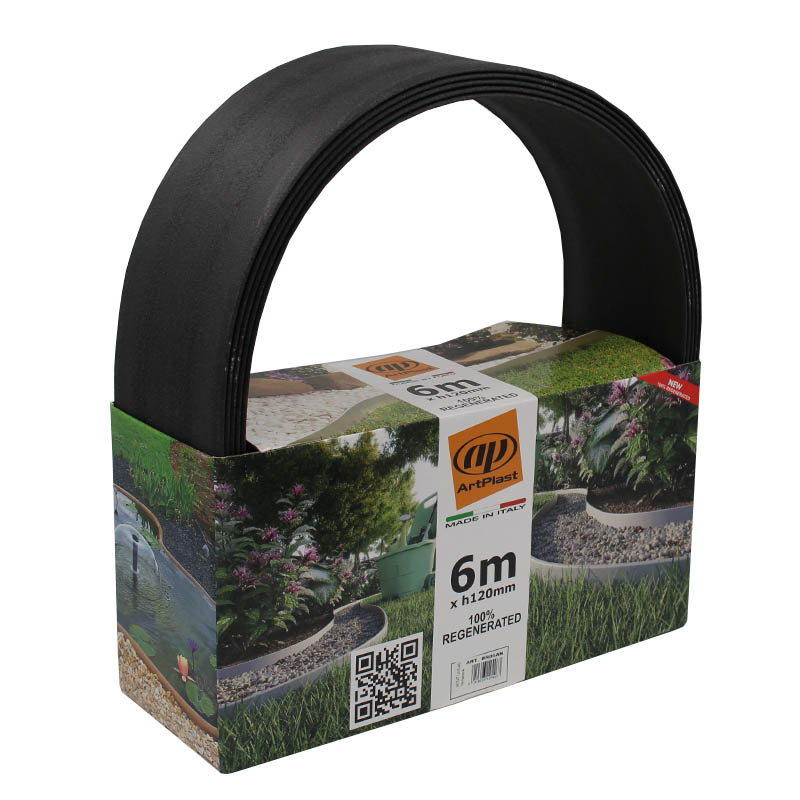 Φράχτης Παρτεριού Κήπου Μήκος 6 μέτρα x0.4x12cm Πλαστικός 2.46kg Ανθρακί ECOBORDURA Extrusion ARTPLAST Ιταλίας