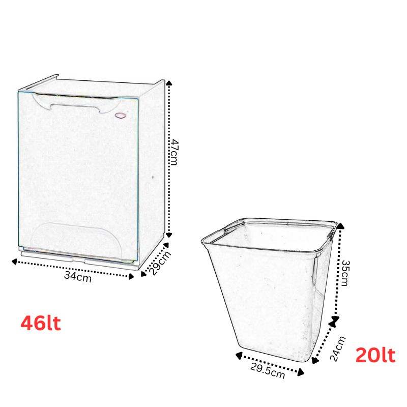 Κάδος απορριμμάτων χωρητικότητας 46 λίτρων με εσωτερικό κάδο 20 λίτρων, κατασκευασμένος από πολυπροπυλένιο, ένα υλικό φιλικό προς το περιβάλλον και ανθεκτικό στην υπεριώδη ακτινοβολία UV και τις καιρικές συνθήκες που πλένεται εύκολα, δε συγκρατεί υγρασία και οσμές, ενώ είναι ανθεκτικό στην επαφή με έλαια και διαλύτες.