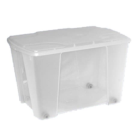 Διαθέτει δύο πλαστικά πιαστράκια για να ασφαλίζει το καπάκι, 4 ροδάκια για εύκολη μετακίνηση και διάφανο σκελετό για να είναι ευδιάκριτο το περιεχόμενο. Απόλυτα πρακτικό, μπορεί να τοποθετηθεί σε κάθε γωνιά του σπιτιού ενώ στοιβάζεται το ένα πάνω από το άλλο χωρίς κίνδυνο εκτροπής λόγω των ειδικών εγκοπών στο καπάκι.