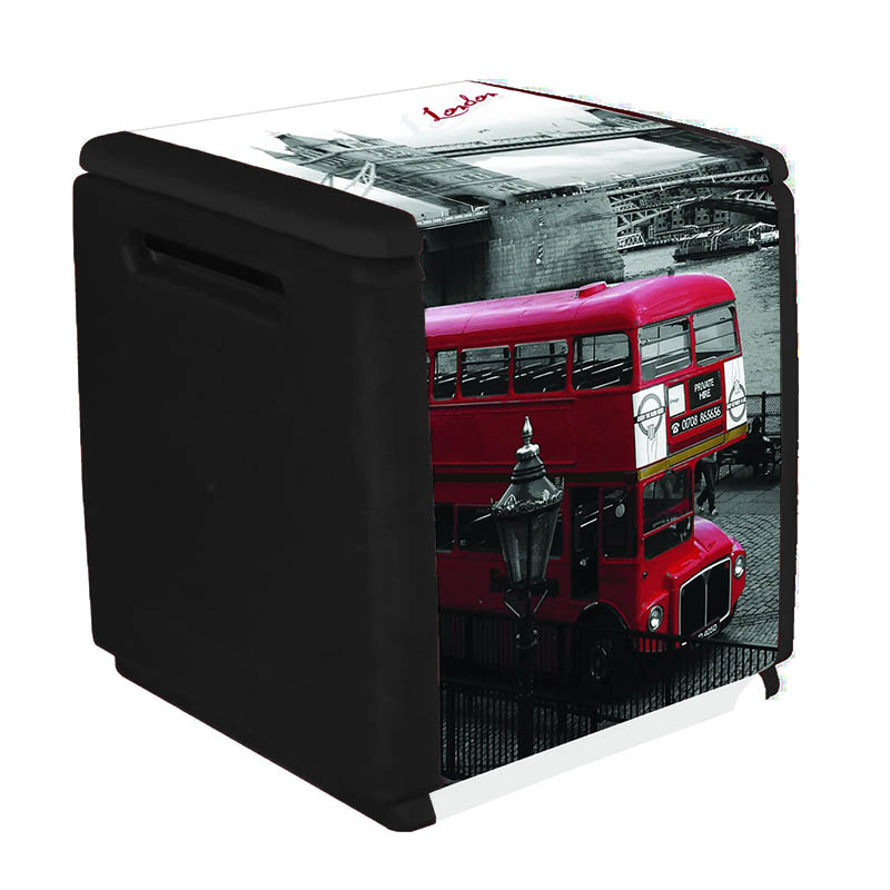 Πλαστικό μπαούλο αποθήκευσης, κυβοειδές με θέμα το Λονδίνο. Κατασκευασμένο από πολυπροπυλένιο, ένα ανθεκτικό και ανακυκλώσιμο υλικό, φιλικό προς το περιβάλλον. Μοναδικός συνδυασμός design και πρακτικής εφαρμογής, είναι κομψό και λειτουργικό, ανθεκτικό στην υπεριώδη ακτινοβολία UV και την υγρασία αφού το υλικό και σχήμα του απομακρύνουν το νερό της βροχής. Καταλαμβάνει ελάχιστο χώρο ενώ ταυτόχρονα διαθέτει μεγάλη χωρητικότητα (120 λίτρα). Είναι κατάλληλο τόσο για εσωτερικό όσο και για εξωτερικό χώρο. Μπορεί να δώσει λύσεις αποθήκευσης στο σπίτι, στο εξοχικό, στο γκαράζ, στο μπαλκόνι, στις σκάλες και όπου αλλού θέλετε. Πλένεται χωρίς να συγκρατεί μυρωδιές ενώ συναρμολογείται εύκολα χωρίς τη χρήση ειδικών εργαλείων. Συμμορφώνεται απόλυτα με τον Ευρωπαϊκό Κανονισμό REACH για την προστασία της υγιεινής και του περιβάλλοντος.
