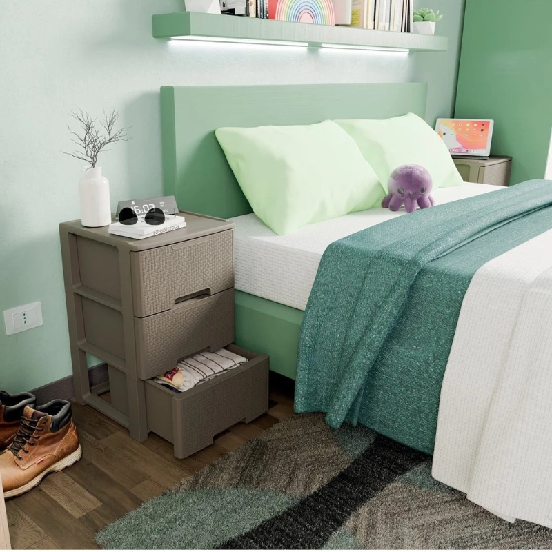 Συρταριέρα πλαστική με υφή rattan και 3 συρτάρια, ιταλικού σχεδιασμού και παραγωγής, κατασκευασμένη εξ' ολοκλήρου από ανθεκτικό πλαστικό (πολυπροπυλένιο). Πρακτική και εύχρηστη στην καθημερινότητα με συρτάρια που αφαιρούνται και επανατοποθετούνται για τον εύκολο καθαρισμό τους, ενώ διαθέτουν εργονομική διπλή λαβή για άνετο άνοιγμα.