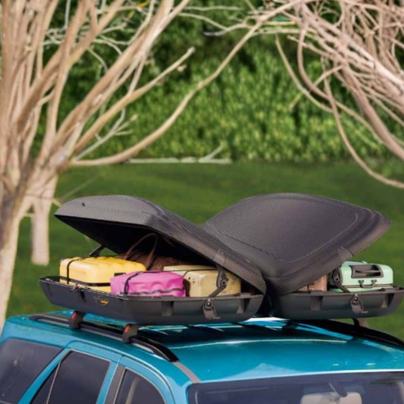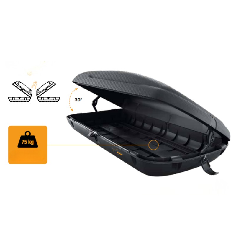 Μπαγκαζιέρα οροφής αυτοκινήτου μεγάλης χωρητικότητας 400 λίτρων και μεγάλης αντοχής βάρους (75kg), κατασκευασμένη εξ'ολοκλήρου από πολυπροπυλένιο. ανακυκλώσιμο πλαστικό, φιλικό προς το περιβάλλον και μεγάλης αντοχής στη υπεριώδη ακτινοβολία UV και στις ακραίες καιρικές συνθήκες.