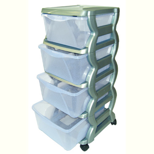 Πλαστική συρταριέρα ιταλικού σχεδιασμού και προέλευσης, κατασκευασμένη απο ανθεκτικό πλαστικό στο χρόνο και τη καθημερινή χρήση. Διαθέτει 4 πλαστικά συρτάρια διάφανου γκρι χρώματος για να είναι εμφανές το περιεχόμενο και 4 ρόδες για να διευκολύνει στην μετακίνηση. Συναρμολογείται εύκολα σε μόλις 1 λεπτό χωρίς τη χρήση εργαλειών.