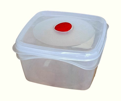 Τετράγωνο φαγητοδοχείο Ιταλικής παραγωγής 2lt, κατασκευασμένο από πλαστικό κατάλληλο για τρόφιμα σύμφωνα με τους ευρωπαϊκούς κανονισμούς. Ανθεκτικό στην καθημερινή χρήση και κατάλληλο για πλύσιμο στο πλυντήριο πιάτων αφού αντέχει έως και τους 100°C. Χρησιμοποιείται για την αποθήκευση των τροφίμων στο ψυγείο (συντήρηση - κατάψυξη) ενώ διαθέτει ειδική βαλβίδα στο καπάκι για την απομάκρυνση του αέρα από το εσωτερικό του. Πριν την τοποθέτηση του φαγητοδοχείου στην κατάψυξη πατάμε στο κέντρο του καπακιού για να φύγει πρώτα ο αέρας και μετά κλείνουμε την βαλβίδα. Έτσι αποθηκεύεται το φαγητό σε συνθήκες κενού αέρος, αυξάνεται το χρονικό διάστημα διατήρησης και μειώνεται η πιθανότητα αλλοίωσης. Τοποθετείται στο φούρνο μικροκυμάτων για ζέσταμα ή ξεπάγωμα των τροφίμων, με ανοιχτή τη βαλβίδα για την εισαγωγή νωπού αέρα. Διατίθεται με διάφανο σκελετό για τον καλύτερο έλεγχο του περιεχομένου και με διάφανο ή χρωματιστό (3 χρώματα) καπάκι.