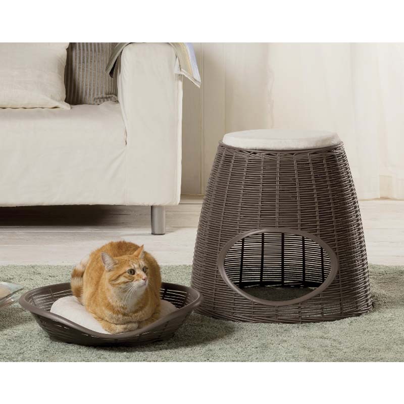 BAMA ITALY Διπλό Κρεβατάκι Κατοικιδίων-Σκαμπό 52x50x55cm RATTAN + 2 Μαξιλάρια PASHA Λευκό
