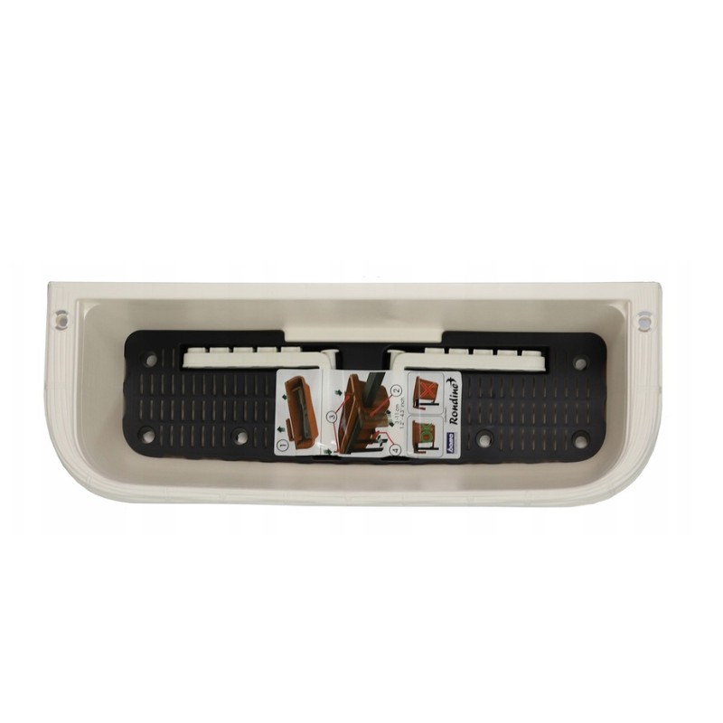 Ζαρντινιέρα με κομψή πλεκτή όψη Ιταλικού σχεδιασμού και παραγωγής, κατασκευασμένη εξ'ολοκλήρου από 100% ανακυκλώσιμο πλαστικό, ανθεκτικό πλαστικό κατά της υπεριώδους ακτινοβολίας UV, των ακραίων μεταβολών της θερμοκρασίας και μεγάλης αντοχής στο χρόνο. Διαθέτει πλαστικούς ρυθμιζόμενους βραχίονες με ανάπτυγμα από 3-11 εκατοστά ώστε να εφαρμόζει αποτελεσματικά σε κάγκελα και κουπαστές διαφόρων διαστάσεων. Στην βάση της υπάρχει σύστημα αποστράγγισης που δεν επιτρέπει διαρροές ενώ ταυτόχρονα προμηθεύει στα φυτά την απαραίτητη υγρασία.