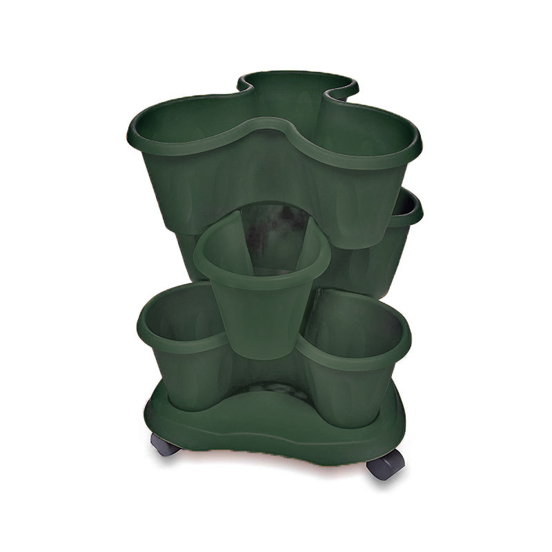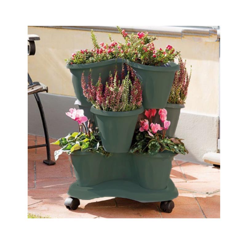 Σύνθεση που αποτελείται από 3 πλαστικές γλάστρες-ζαρντινιέρες και 1 βάση με ρόδες, Ιταλικού σχεδιασμού και παραγωγής, συνολικής χωρητικότητας 30 λίτρων. Κατασκευασμένα από ανακυκλώσιμο ανθεκτικό πλαστικό, το οποίο αντέχει στις μεταβολές τις θερμοκρασίας έως και -20°C, και στην υπεριώδη ακτινοβολία UV. Το χρώμα τους δεν ξεθωριάζει. Οι γλάστρες διαθέτουν σύστημα αποστράγγισης στη βάση τους, και στοιβάζονται εναλλάξ δημιουργώντας μοντέρνες συνθέσεις. Η βάση διαθέτει 3 ανθεκτικούς τροχούς, καθιστώντας την μετακίνηση της σύνθεσης εύκολη υπόθεση.