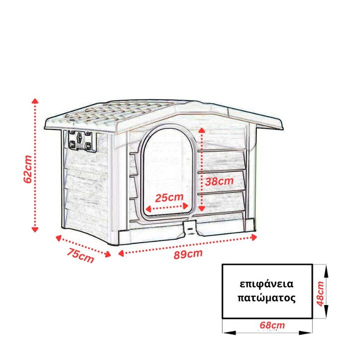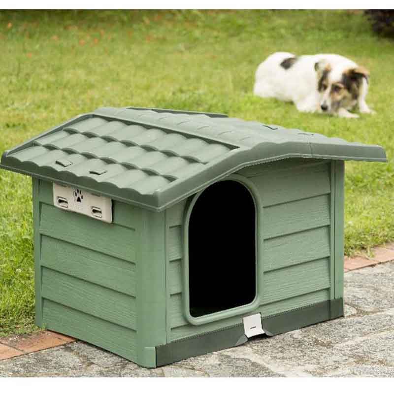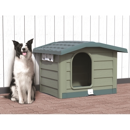 Σπιτάκι σκύλου για κατοικίδια μεσαίου μεγέθους, κατασκευασμένο από πολυπροπυλένιο, 100% ανακυκλώσιμο πλαστικό που δεν απορροφά οσμές και υγρασία, ανθεκτικό έναντι ελαίων και διαλυτών και μεγάλης αντοχής στον χρόνο και την καθημερινή χρήση.
