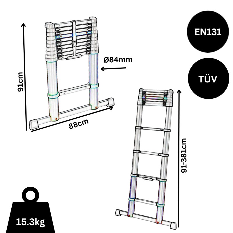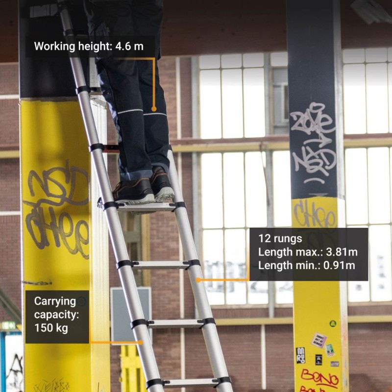 BATAVIA Τηλεσκοπική Σκάλα 3.81m Αλουμινίου με 13 Σκαλιά Βάρος 15.3kg MAX Αντοχή 150kg Πάτημα Σκαλοπατιού 6.5cm GIRAFFE AIR Professional EN131/TÜV