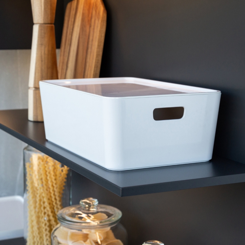 Ορθογώνιο κουτί αποθήκευσης ιταλικής παραγωγής, με μίνιμαλ σχεδιασμό κατασκευασμένο από πλαστικό υψηλής αντοχής στο χρόνο και την καθημερινή χρήση. Ιδανικό για οικιακές και επαγγελματικές χρήσεις, εξασφαλίζοντας μια αξιόπιστη και ευέλικτη λύση αποθήκευσης.