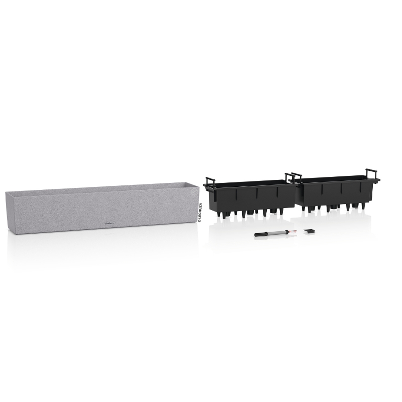 Η συσκευασία περιλαμβάνει δύο αφαιρούμενους κάδους φύτευσης που μπορούν να φυτευτούν ανεξάρτητα για ευέλικτη χρήση στις εναλλαγές των φυτών, το ενσωματωμένο σύστημα αυτοποτισμού της LECHUZA το οποίο εξασφαλίζει τη σωστή υγρασία για τα φυτά σας χωρίς να χρειάζεται συνεχής παρακολούθηση, το υπόστρωμα LECHUZA PON που χρησιμοποιείται ως στρώμα αποστράγγισης για την καλύτερη ροή του νερού. Το υπερβολικό νερό αποστραγγίζεται εύκολα, μέσω της βαλβίδας αποστράγγισης που παρέχει στο κάτω μέρος.