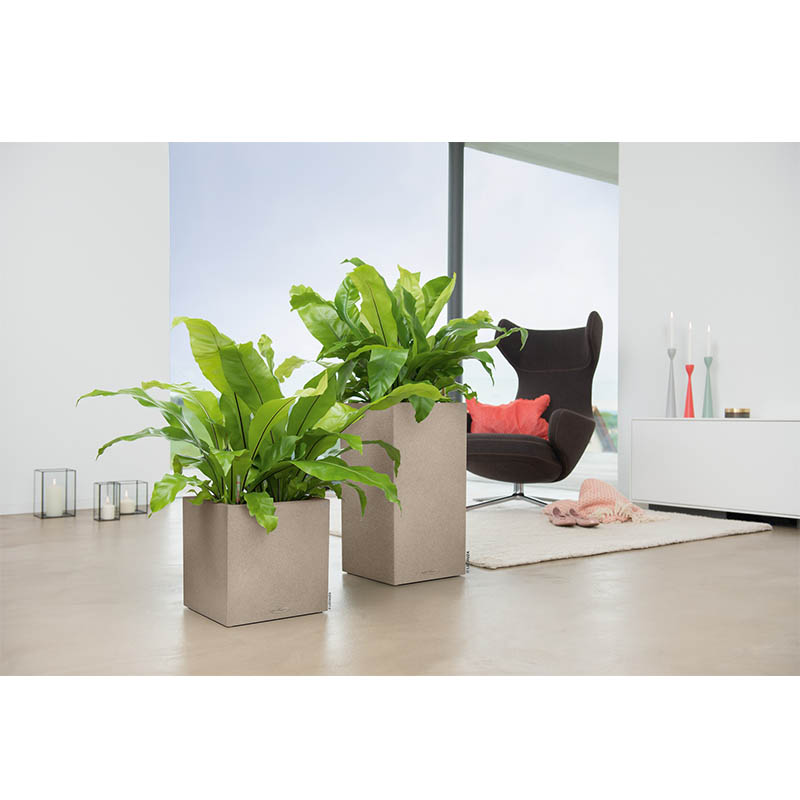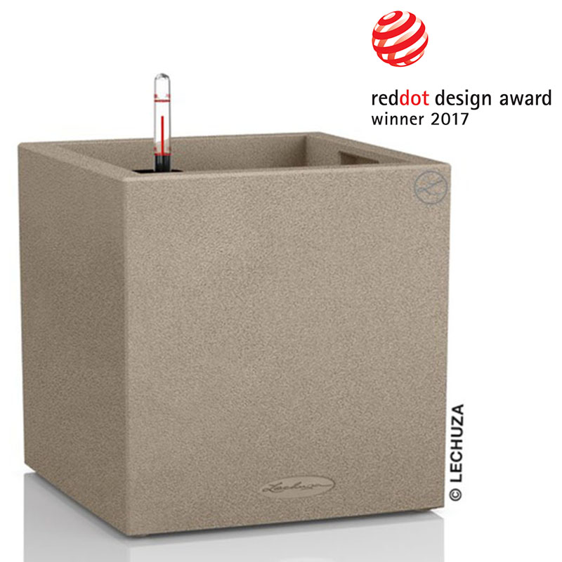 Επιδαπέδια γλάστρα με ανάγλυφη όψη φυσικής πέτρας χρώματος μπεζ της άμμου, κορυφαία ποιότητα κατασκευής και κομψό σχεδιασμό που έχει αποσπάσει βραβείο design στο διεθνή διαγωνισμό Reddot design award 2017. Η συσκευασία περιλαμβάνει τη γλάστρα, το δοχείο φύτευσης, το σύστημα αυτοποτισμού και το lechuza-pon. Απόλυτα εργονομική χάρη στις βυθιζόμενες λαβές (με δίπλωμα ευρεσιτεχνίας), προσφέρει τη δυνατότητα για εύκολη αλλαγή των δοχείων φύτευσης διευκολύνοντας την αλλαγή φυτών, τη μεταφύτευση, το κλάδεμα των ριζών και το ξέπλυμα των φύλλων ενώ διαθέτει και διπλή βαλβίδα αποστράγγισης στη βάση του εσωτερικού δοχείου και της γλάστρας για να απορρέει το πλεονάζον νερό όταν τοποθετείται σε εξωτερικό χώρο προσφέροντας υγειές περιβάλλον στα φυτά ενώ το σύστημα αυτοποτισμού λειτουργεί ευεργετικά για το φυτό καθώς δίνει την απαραίτητη ποσότητα νερού που έχει ανάγκη το φυτό αλλά και για τον χρήστη, απαλλάσοντας τον από την καθημερινή φροντίδα του φυτού. Το δοχείο φύτευσης έχει χωρητικότητα νερού 7 και χώματος 29 λίτρων και προσφέρει ιδανικό περιβάλλον για την ανάπτυξη φυτών με ύψος έως 100 και ριζικό σύστημα έως 25 εκατοστά. Πολύ ανθεκτική και ελαφριά κατασκευή, αντέχει στις μεταβολές της θερμοκρασίας και την υπεριώδη ακτινοβολία UV. Η γλάστρα LECHUZA Canto Color Κύβος 40 αποτελεί μια εξαιρετική επιλογή για όσους θέλουν να ξεχωρίζουν συνδυάζοντας αρμονικά υψηλή αισθητική και λειτουργικότητα.