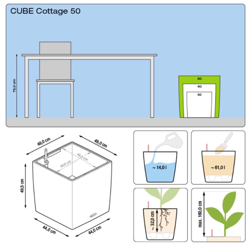 Πολύ ανθεκτική και ελαφριά κατασκευή, αντέχει στις μεταβολές της θερμοκρασίας και την υπεριώδη ακτινοβολία UV. Η γλάστρα LECHUZA Cube Cottage 50 αποτελεί μια εξαιρετική επιλογή για όσους θέλουν να ξεχωρίζουν συνδυάζοντας αρμονικά υψηλή αισθητική και λειτουργικότητα.