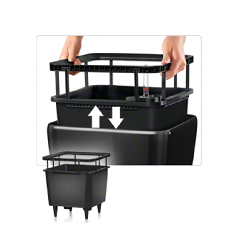 Επιτραπέζια γλάστρα με κορυφαία ποιότητα κατασκευής και μοναδικό σχεδιασμό ασημί high gloss χρώματος. Η συσκευασία περιλαμβάνει τη γλάστρα, το εσωτερικό δοχείο φύτευσης, το σύστημα αυτόματου ποτίσματος και το lechuza-pon. Απόλυτα εργονομική χάρη στη βυθιζόμενη περιμετρική λαβή (με δίπλωμα ευρεσιτεχνίας), προσφέρει τη δυνατότητα για εύκολη αλλαγή των δοχείων φύτευσης διευκολύνοντας την αλλαγή φυτών, τη μεταφύτευση, το κλάδεμα των ριζών και το ξέπλυμα των φύλλων ενώ διαθέτει και βαλβίδα αποστράγγισης στη βάση της γλάστρας για να απορρέει το πλεονάζον νερό όταν τοποθετείται σε εξωτερικό χώρο προσφέροντας υγειές περιβάλλον στα φυτά. Το σύστημα αυτοποτισμού λειτουργεί ευεργετικά για το φυτό καθώς του παρέχει την απαραίτητη ποσότητα νερού που χρειάζεται ενώ είναι εξίσου ωφέλιμο και για τον χρήστη καθώς τον απαλλάσσει από την καθημερινή ευθύνη φροντίδας του φυτού. Το δοχείο φύτευσης έχει χωρητικότητα χώματος 4 και νερού 1,1 λίτρων και προσφέρει ιδανικό περιβάλλον για την ανάπτυξη φυτών με ύψος έως 50 και ριζικό σύστημα έως 13,5 εκατοστά. Πολύ ανθεκτική και ελαφριά κατασκευή, αντέχει στις μεταβολές της θερμοκρασίας και την υπεριώδη ακτινοβολία UV. Η επιτραπέζια γλάστρα LECHUZA Quadro 21 LS αποτελεί εξαιρετική διακοσμητική επιλογή για το σπίτι, τον εργασιακό χώρο, μαγαζιά εστίασης κ.α καθώς η λαμπερή της όψη και το κομψό της design μπορεί να τοποθετηθεί και να αναδείξει οποιόδηποτε χώρο, συνδυάζοντας αρμονικά υψηλή αισθητική και λειτουργικότητα.