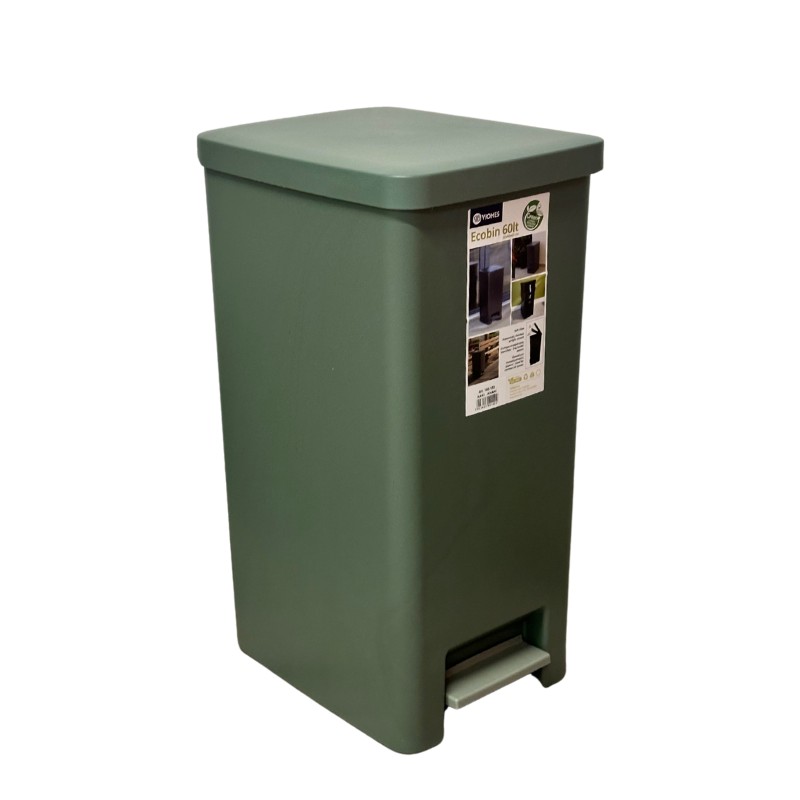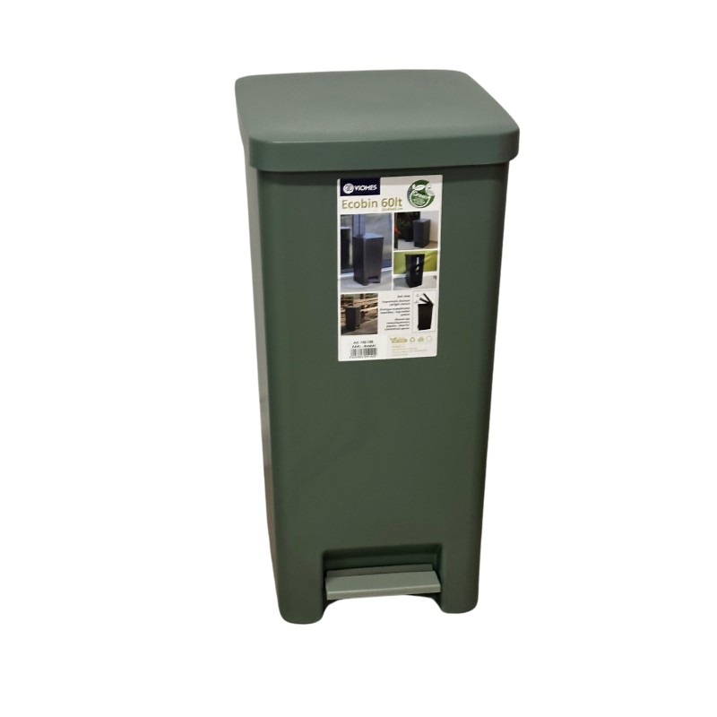 VIOMES Ελλάδας Κάδος Ανακύκλωσης 60lt 32x40x65cm 2.25kg Πλαστικός με Πεντάλ Χακί ECOBIN