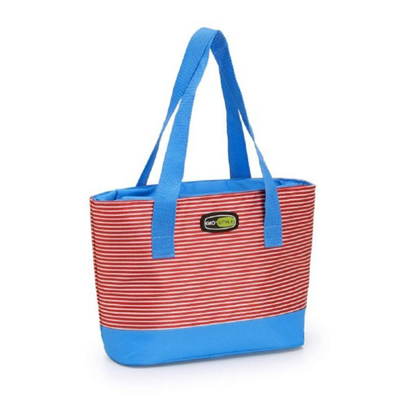 GIOSTYLE Ιταλίας Ισοθερμική Τσάντα 36x11x24cm Πάχος 6mm 9lt Πολυεστέρας 600D MAX Απόδοση 7 Ώρες Πιστοποίηση REACH COOLBAG BEACH SMALL Κόκκινες Ρίγες Μπλε