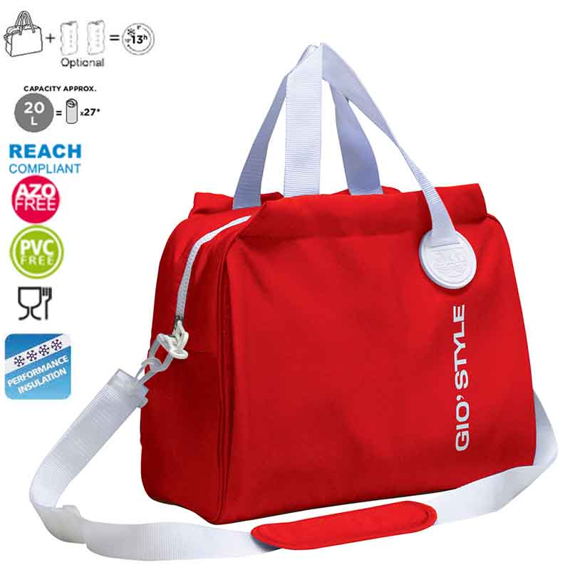 GIOSTYLE Ιταλίας Ισοθερμική Τσάντα 40.5x17x31.5cm Πάχος 6mm 20lt Πολυεστέρας 300D MAX Απόδοση 13 Ώρες Πιστοποιήσεις Azo FREE/REACH SORBETTO L Κόκκινη