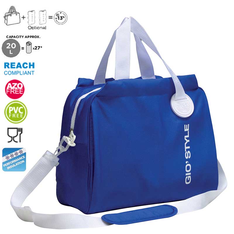 GIOSTYLE Ιταλίας Ισοθερμική Τσάντα 40.5x17x31.5cm Πάχος 6mm 20lt Πολυεστέρας 300D MAX Απόδοση 13 Ώρες Πιστοποιήσεις Azo FREE/REACH SORBETTO L Μπλε