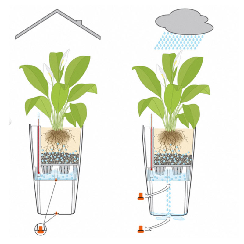 Το σύστημα αυτοποτισμού LECHUZA φροντίζει τα φυτά έως 12 εβδομάδες και εγγυάται τη λήψη της κατάλληλης ποσότητας νερού και θρεπτικών συστατικών για την άριστη ανάπτυξή τους.