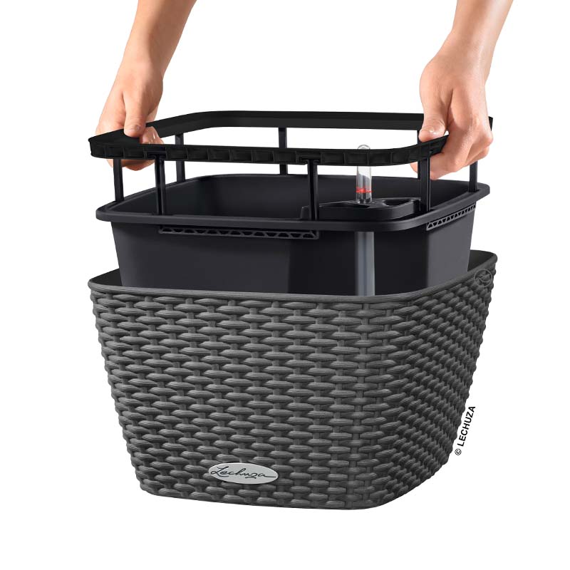 Το σύστημα αυτοποτισμού LECHUZA φροντίζει τα φυτά έως 12 εβδομάδες και εγγυάται τη λήψη της κατάλληλης ποσότητας νερού και θρεπτικών συστατικών για την άριστη ανάπτυξή τους.