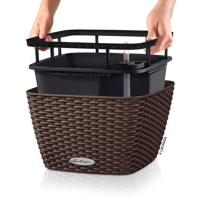 LECHUZA Bacino Cottage 30 Επιδαπέδια Γλάστρα 30x30x18cm Αυτοποτιζόμενη με Δοχείο Φύτευσης Καφέ-Μόκα Γερμανίας