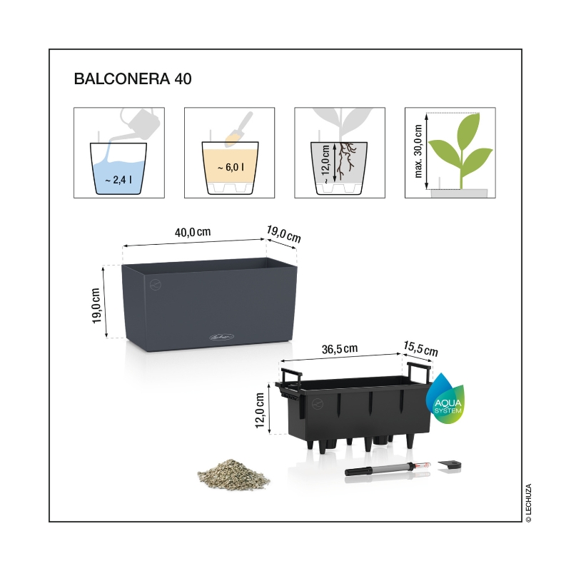 Το σύστημα αυτοποτισμού LECHUZA φροντίζει τα φυτά έως 12 εβδομάδες και εγγυάται τη λήψη της κατάλληλης ποσότητας νερού και θρεπτικών συστατικών για την άριστη ανάπτυξή τους.