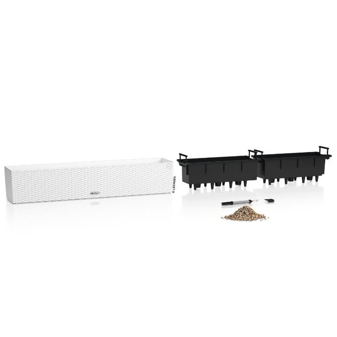 Η συσκευασία περιλαμβάνει δύο αφαιρούμενους κάδους φύτευσης που μπορούν να φυτευτούν ανεξάρτητα για ευέλικτη χρήση στις εναλλαγές των φυτών, το ενσωματωμένο σύστημα αυτοποτισμού της LECHUZA το οποίο εξασφαλίζει τη σωστή υγρασία για τα φυτά σας χωρίς να χρειάζεται συνεχής παρακολούθηση, το υπόστρωμα LECHUZA PON που χρησιμοποιείται ως στρώμα αποστράγγισης για την καλύτερη ροή του νερού. Το υπερβολικό νερό αποστραγγίζεται εύκολα, μέσω της βαλβίδας αποστράγγισης που παρέχει στο κάτω μέρος.