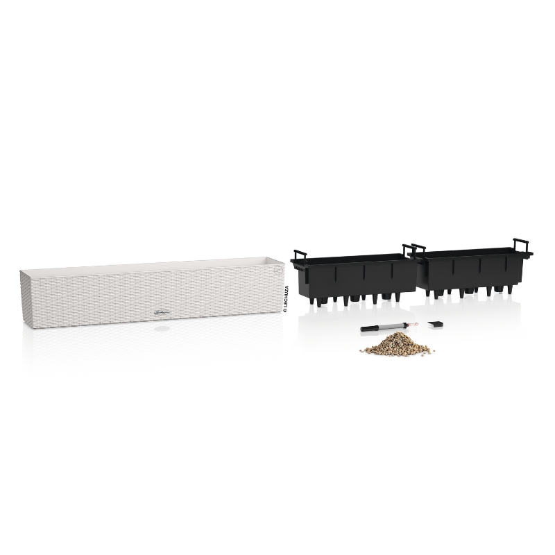 Η συσκευασία περιλαμβάνει δύο αφαιρούμενους κάδους φύτευσης που μπορούν να φυτευτούν ανεξάρτητα για ευέλικτη χρήση στις εναλλαγές των φυτών, το ενσωματωμένο σύστημα αυτοποτισμού της LECHUZA το οποίο εξασφαλίζει τη σωστή υγρασία για τα φυτά σας χωρίς να χρειάζεται συνεχής παρακολούθηση, το υπόστρωμα LECHUZA PON που χρησιμοποιείται ως στρώμα αποστράγγισης για την καλύτερη ροή του νερού. Το υπερβολικό νερό αποστραγγίζεται εύκολα, μέσω της βαλβίδας αποστράγγισης που παρέχει στο κάτω μέρος.