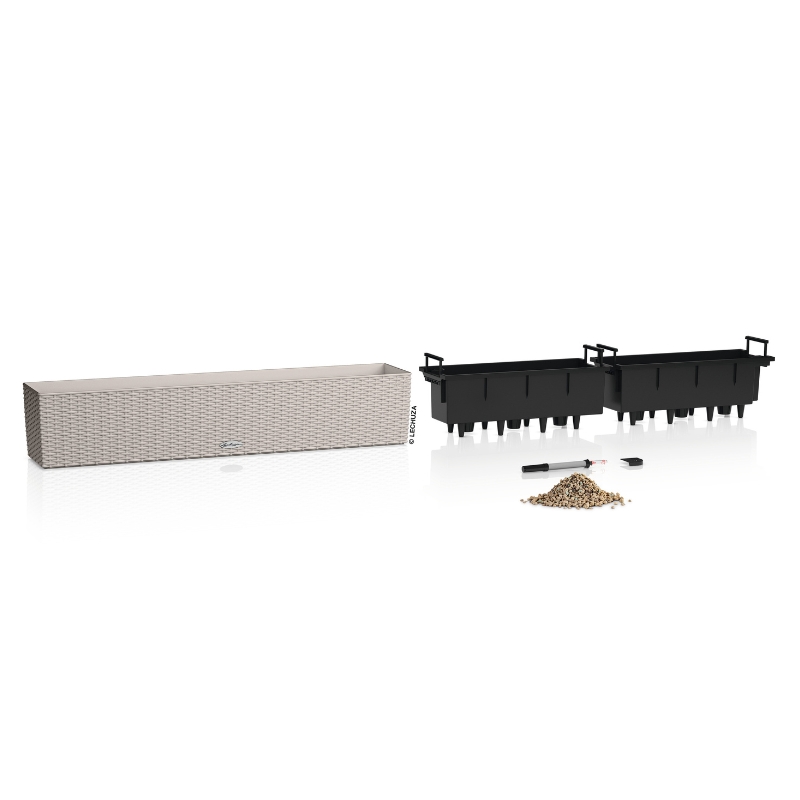 Η συσκευασία περιλαμβάνει δύο αφαιρούμενους κάδους φύτευσης που μπορούν να φυτευτούν ανεξάρτητα για ευέλικτη χρήση στις εναλλαγές των φυτών, το ενσωματωμένο σύστημα αυτοποτισμού της LECHUZA το οποίο εξασφαλίζει τη σωστή υγρασία για τα φυτά σας χωρίς να χρειάζεται συνεχής παρακολούθηση, το υπόστρωμα LECHUZA PON που χρησιμοποιείται ως στρώμα αποστράγγισης για την καλύτερη ροή του νερού. Το υπερβολικό νερό αποστραγγίζεται εύκολα, μέσω της βαλβίδας αποστράγγισης που παρέχει στο κάτω μέρος.