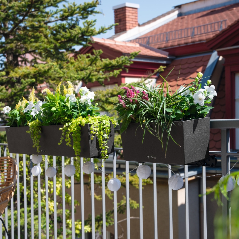 Η LECHUZA Balconera Stone 100 με όψη ανάγλυφης φυσικής πέτρας δίνει μια αίσθηση φυσικότητας και κομψότητας σε κάθε εσωτερικό ή εξωτερικό χώρο. Αποτελεί εξαιρετική διακοσμητική επιλογή απευθυνόμενη σε όσους θέλουν να ξεχωρίζουν συνδυάζοντας αρμονικά υψηλή αισθητική και λειτουργικότητα. Μπορεί να τοποθετηθεί πάνω σε οποιαδήποτε επιφάνεια, σε τραπέζι, πεζούλι, στο έδαφος αλλά και σε κάγκελα μπαλκονιού ή στον τοίχο σε συνδυασμό με τα τα άγκιστρα μπαλονιού LECHUZA.