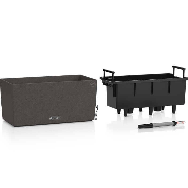 LECHUZA Balconera Stone 40 Ζαρντινιέρα 40x19x19cm Αυτοποτιζόμενη με Δοχείο Φύτευσης Graphite Black Γερμανίας