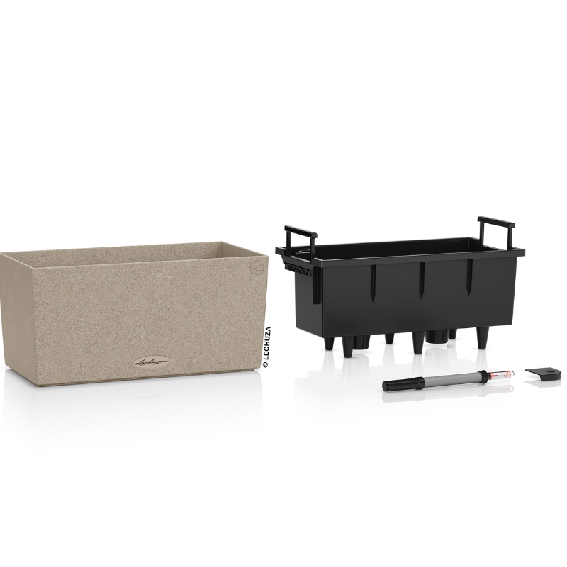 Η συσκευασία περιλαμβάνει τον αφαιρούμενο κάδο φύτευσης για πιο ευέλικτη χρήση στις εναλλαγές των φυτών, το ενσωματωμένο σύστημα αυτοποτισμού της LECHUZA το οποίο εξασφαλίζει τη σωστή υγρασία για τα φυτά σας χωρίς να χρειάζεται συνεχής παρακολούθηση, το υπόστρωμα LECHUZA PON που χρησιμοποιείται ως στρώμα αποστράγγισης για την καλύτερη ροή του νερού. Το υπερβολικό νερό αποστραγγίζεται εύκολα, μέσω της βαλβίδας αποστράγγισης που παρέχει στο κάτω μέρος.